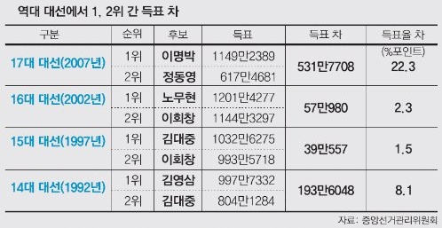°ú°Å ´ë¼±¿¡¼µµ ÀÌ·± Çö»óÀÌ ±×´ë·Î ³ªÅ¸³´Ù°í ±è ¿øÀåÀº ºÐ¼®Çß´Ù. 2007³â À̸í¹Ú È帴 Á¤µ¿¿µ È常¦ 531¸¸ Ç¥¶ó´Â ¿ª´ë Ãִ٠ǥÂ÷·Î À̰å´Ù. ±×·¸´Ù°í ÃÖ´Ù µæÇ¥¸¦ ÇÑ °ÍÀº ¾Æ´Ï´Ù. ÀÌ Èĺ¸ÀÇ µæÇ¥¼ö´Â 1149¸¸¿© Ç¥¿´´Ù. ÀÌ´Â 2002³â ³ë¹«Çö Èĺ¸¿¡°Ô ÆÐÇÑ ÀÌȸâ Èĺ¸ÀÇ µæÇ¥¼ö(1144¸¸¿© Ç¥)¿Í °ÅÀÇ ÀÏÄ¡ÇÑ´Ù.