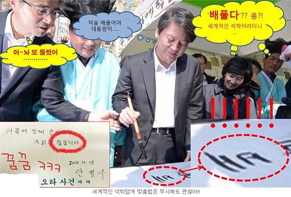 2012³â ´ë¼±¿¡¼ 'ðôÝÁµµ¿ì¹Ì'·Î Àü¶ôÇÑ ¾Èö¼ö ¾¾°¡ 18ÀÏ ¿ÀÈÄ ¼¿ï ¸íµ¿°ú °³²¿ªÀ» ã¾Æ ½Ã¹ÎµéÀ» »ó´ë·Î ¶Ç ´Ù½Ã '»ó½Ä'À» ¿î¿îÇϸç ÅõÇ¥Âü¿©¸¦ Ã˱¸Çß´Ù.