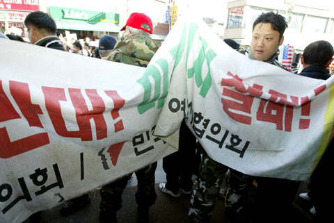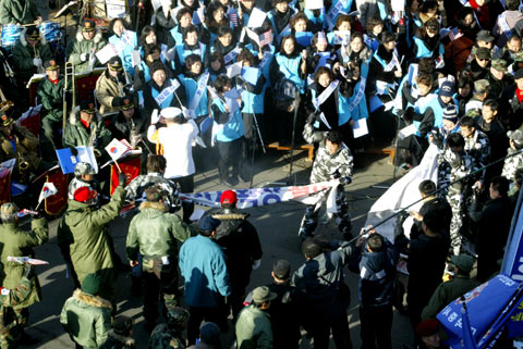Çà·ÄÀº ¿¬´ÜÀ» ¼³Ä¡ÇÑ ºÎ´ë Á¤¹® ÂÊ¿¡¼ ¾à 1£ë£íÀÌ»ó À̾îÁ³´Ù. Âü¼®ÀÚµéÀº ȤÇÑ(ûåùÎ) ¼Ó¿¡¼µµ ¡°Ä£ºÏ¼¼·Â Ÿµµ¡±¸¦ ¿¬È£ÇÏ¸ç ´ëÇѹα¹ ¼öÈ£ °áÀǸ¦ ´ÙÁ³´Ù.
