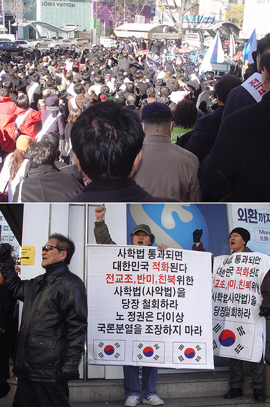 Àü¿©¿Á ´ëº¯ÀÎÀº '´ëÇѹα¹À¸·Î °¥ °ÍÀΰ¡ ¾Æ´Ñ°¡ ¶ó´Â ¾öÁßÇÑ ½ÉÆÇ¿¡ ÀÖ´Ù'¸ç ³ë¹«Çö Á¤ºÎ´Â '°³Çõ»óǰÀÇ Àå»ç²Û'À̶ó°í ÀÏħÇß´Ù. À̾î '(»çÇйý °³Á¤Àº)´ëÇѹα¹À» µ¹µ¹¸»¾Æ ±×µéÀÌ ¿øÇÏ´Â ´ë·Î °®´Ù ¹ÙÄ¡·Á´Â °Í'À̶ó¸ç '¾î¸Ó´ÏÀÇ ½ÉÁ¤À¸·Î ¿ì¸®¾ÆÀ̸¦ ¿ì¸®°¡ º¸È£ÇØ¾ß ÇÑ´Ù'°í µ¡ºÙ¿´´Ù.