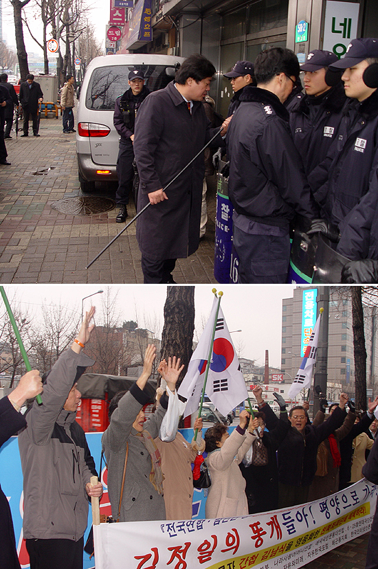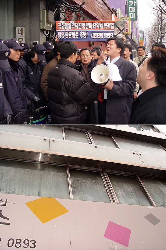 Âü°¡ÀÚµéÀº 2Ãþ ¹ü¹Î·Ã »ç¹«½ÇÀ» ÇâÇØ '³ª¿À¶ó'°í ¿ÜÄ¡¸ç °Ç¹° ÁøÀÔÀ» ½Ãµµ, °æÂû°ú ½Ç¶ûÀ̸¦ ¹ú¿´´Ù. ÀÌ¿ÍÇÔ²² ºÏÇÑ ±èÁ¤ÀÏÀÇ ¾ó±¼ÀÌ ±×·ÁÁø Çö¼ö¸·À» Ä®·Î ±ß°í, ÈÇü½ÄÀ» °ÅÇàÇϱ⵵ Çß´Ù.