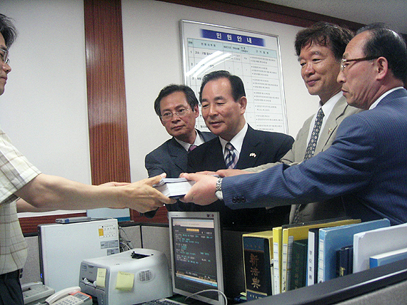 °í¹ßÀå Á¢¼ö¸¦ ¸¶Ä£ À̵éÀº °ð¹Ù·Î ´ë°ËÂûû ±âÀÚ½ÇÀ» ¹æ¹®, ±â»ç¸¦ ¼Û°íÁßÀÎ ±âÀڵ鿡°Ô °í¹ß»ç½ÇÀ» ÀüÇÏ´Â ÇÑÆí °í¹ß ÃëÁö¸¦ ¼³¸íÇß´Ù. °è¼ÓÇØ¼ ´ë°ËÂûû ¾Õ¿¡¼µµ ±è´ëÁß Àü ´ëÅë·ÉÀ» ±ÔźÇÏ´Â ±âÀÚȸ°ßÀ» °¡Á³´Ù.