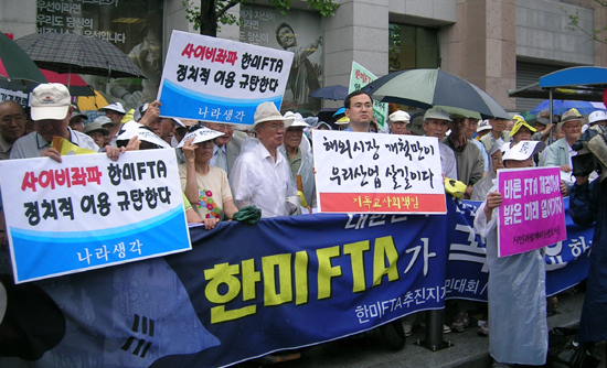 Çѹ̿ìÈ£Çùȸ, ´ëÇѹα¹¼öÈ£¹ü±¹¹Î¿¬ÇÕ µî 13°³ ÀÚÀ¯Áø¿µ ½Ã¹Î´Üü´Â 12ÀÏ ¼¿ï Á¾·Î 5°¡ Á¦ÀÏÀºÇà ¾Õ¿¡¼'ÇѹÌFTA ÃßÁø ÁöÁö ±¹¹Î´ëȸ'¸¦ ¿¾ú´Ù.