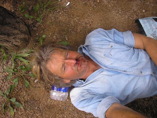 ÀÌ ¶§¹®¿¡ °æÂû¿¡ ÀÇÇØ Àα٠½£ ¼ÓÀ¸·Î ²ø·Á°£ Æú·¯Ã¾ ¾¾´Â ¿ÀÈÄ 3½Ã 30ºÐ°æ, ÀÚ½ÅÀÌ Ã³À½ ½ÃÀ§¸¦ ÇÏ´ø Àå¼ÒÀÎ ¿Ü±³ºÎ Á¤¹® ¾ÕÀ¸·Î °É¾î°¬À¸¸ç, À̸¦ Á¦ÁöÇÏ´Â °æÂû°ú °æÈ£Àοø¿¡ ÀÇÇØ ¶¥¿¡ ³»µ¿´óÀÌÃÄÁ³´Ù. ÀÌ °úÁ¤¿¡¼ Æú·¯Ã¾ ¾¾´Â ³ª¹«¿¡ ºÎµúÈ÷°í, ¹Ù´Ú¿¡ Ãæµ¹ÇØ ÄÚÇǸ¦ È긮´Â µî »óÇØ¸¦ ÀÔ¾ú´Ù.