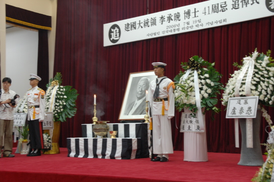 19ÀÏ ¿ÀÀü 10½Ã °Ç±¹ ´ëÅë·É À̽¸¸ ¹Ú»çÀÇ ¼­°Å 41ÁÖ±â Ãßµµ½ÄÀÌ ¼­¿ï µ¿ÀÛ±¸ ±¹¸³ÇöÃæ¿øÒ® ÇöÃæ°ü¿¡¼­ ¹ÚÀ¯Ã¶ ±¹°¡º¸ÈÆÃ³ Àå°üÀ» ºñ·ÔÇØ ¾à 300¿© ¸íÀÇ Ã߸ð°´ÀÌ ¸ðÀÎ °¡¿îµ¥ °ÅÇàµÆ´Ù. À̽¸¸ ¹Ú»ç À¯Á·ÀÎ ÀÌÀμö ±³¼ö ³»¿Ü´Â ½ÄÀüºÎÅÍ ÇöÃæ°ü ÀÔ±¸¿¡¼­ Ãßµµ°´À» ¸Â¾Ò´Ù.