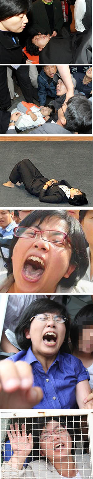 2009³â 1¿ù5ÀÏ ì° ´ëÇ¥´Â ¶Ç ´Ù½Ã ¿ïºÎ¢¾ú´Ù. ¹Î³ë´çÀº ´ç½Ã Çѳª¶ó´çÀÇ ÀïÁ¡¹ý¾È 󸮿¡ ¹Ý´ëÇÏ¸ç ±¹È¸ º»È¸ÀÇÀå ¾Õ¿¡¼ Çö¼ö¸·À» ¼³Ä¡ÇÑ Ã¤ ¿¬Á³ó¼ºÀ» ¹ú¿´´Ù. 5ÀÏ ¹ã ±¹È¸°æÀ§µéÀÌ ºÒ¹ýÀ¸·Î ¼³Ä¡µÈ Çö¼ö¸·À» ¶¼ ³»·Á ÇÏÀÚ ¡°³ÊÈñµéÀÌ ±¹È¸ÀÇ¿ø ¶§·Á ÆÐ´Â »ç¶÷µéÀ̾ߡ±¶ó°í ¿ïºÎ¢À¸¸ç °æ·ÄÇÏ°Ô Ç×ÀÇÇß´Ù. ±×·¯³ª ¸·»ó ´ç½Ã µ¿¿µ»óÀ» º¸¸é °æÀ§°¡ ÀÇ¿øÀ» ¶§·Á ÆÐ´Â Àå¸éÀº ¾ø´Ù. ¹Ý´ë·Î ¹Î³ë´çÀÇ °±â°© ÀÇ¿øÀÌ °æÀ§µé¿¡°Ô ¹ß±æÁúÀ» ÇÏ´Â ¸ð½ÀÀº ´ã°Ü ÀÖ´Ù.
