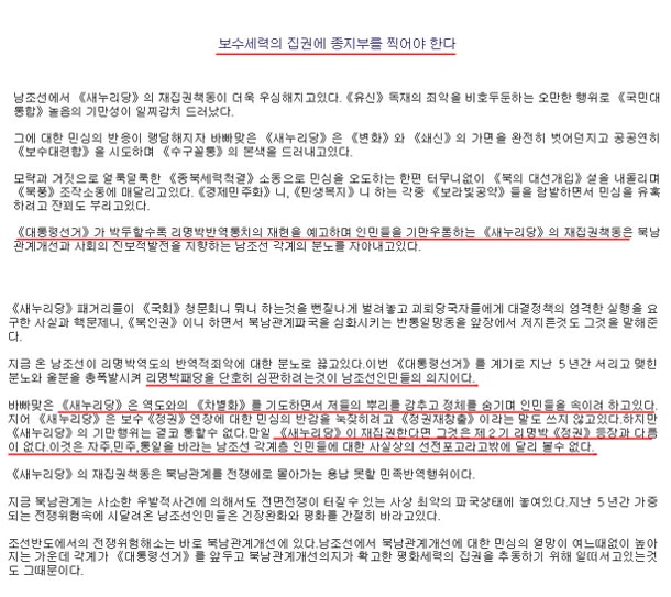 ºÏÇÑÀÇ ³ëµ¿½Å¹®Àº 27ÀÏ ¡®º¸¼ö¼¼·ÂÀÇ Áý±Ç¿¡ Á¾ÁöºÎ¸¦ Âï¾î¾ß ÇÑ´Ù¡¯´Â Á¦¸ñÀÇ ±â¸í(¸®È¿Áø) ±â»ç¸¦ ÅëÇØ ¡°³²Á¶¼±¿¡¼­ ¸®½Â¸¸ ¿ªµµÀÇ ÀÚÀ¯´çÀ¸·ÎºÎÅÍ ë«ãæ µ¶ÀçÀÚÀÇ ¹ÎÁÖ°øÈ­´ç°ú ±× µÚ¸¦ ÀÌÀº Çѳª¶ó´ç¿¡ À̸£±â±îÁö »õ´©¸®´çÀÇ îñãóµéÀº ¸ðµÎ°¡ »ç´ë¸Å±¹°ú µ¿Á·´ë°á·Î ¹ÎÁ·ÀÇ ÇѰᰰÀº ÅëÀÏÀÇÁö¿¡ µµÀüÇØ ³ª¼± ¾Ç¸í³ôÀº ¹Ý¿ª´ç¡±À̶ó¸ç »õ´©¸®´çÀ» ÆïÇÏÇß´Ù.