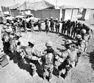 | À̶óÅ© ¹Ù±×´Ùµå Ä·ÇÁ ºòÅ丮 ±âÁö¿¡ ÁÖµÐÇÏ´Â ¹Ì±º º´»çµéÀÌ 2007³â 7¿ù 7ÀÏ ¹Ù±×´Ùµå ½Ã³» ¼øÂû¿¡ ³ª¼±â Àü ¿øÀ» ±×¸° ä ¹«»ç±ÍȯÀ» ±â¿øÇÏ´Â ±âµµ¸¦ µå¸®°í ÀÖ´Ù. |
