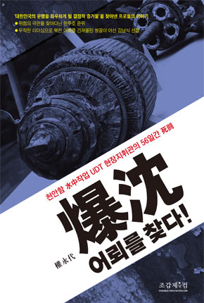 2010³â 3¿ù26ÀÏ ¹ã ¹é·Éµµ ºÎ±Ù ÇØ¿ª¿¡¼ ºÏÇÑ ¾î·Ú °ø°ÝÀ¸·Î ħ¸ôÇÑ Ãµ¾ÈÇÔ »ç°ÇÀÌ ÀÏ¾î³ Áö 6³âÀÌ Èê·¶´Ù. Á¶°©Á¦´åÄÄÀº ¡®Ãµ¾ÈÇÔ â©ñéÀÛ¾÷ UDT ÇöÀåÁöÈÖ°üÀÇ 56Àϰ£ ÞÝ÷㡯-¡¶øïöØ(ÆøÄ§) ¾î·Ú¸¦ ã´Ù!¡·¶õ Á¦¸ñÀÇ ¡®Ãµ¾ÈÇÔ ÆøÄ§ Áõ°Å¹° ¼ö»ö¡¯ ÇöÀå±â·ÏÀ» Ã¥À¸·Î ¹ß°£Çß´Ù. îÊíº(ÀúÀÚ)´Â ´ç½Ã ¼ö»ö±¸Á¶´ÜÀÇ â©ñéÀÛ¾÷À» ÁöÈÖÇÑ UDT ÁöÈÖ°ü ÏíçµÓÛ ´ë·É(51¡¤´ç½Ã Áß·É)ÀÌ´Ù. ÀúÀÚ´Â ÇÁ·Ñ·Î±×¿¡¼ ÀÌ Ã¥À» ¾´ ÀÌÀ¯¸¦ ¸»ÇÑ´Ù.